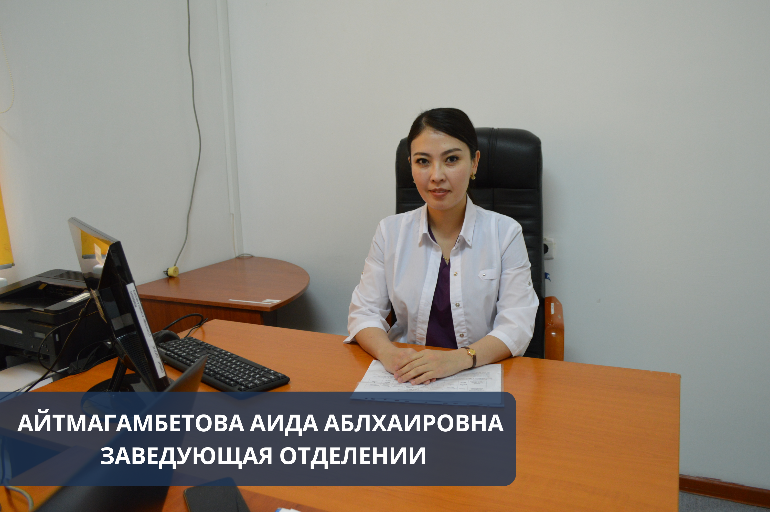 Заведующая отделением-Айтмагамбетова Аида Аблаировна, врач-лаборант со стажем работы 6 лет.
